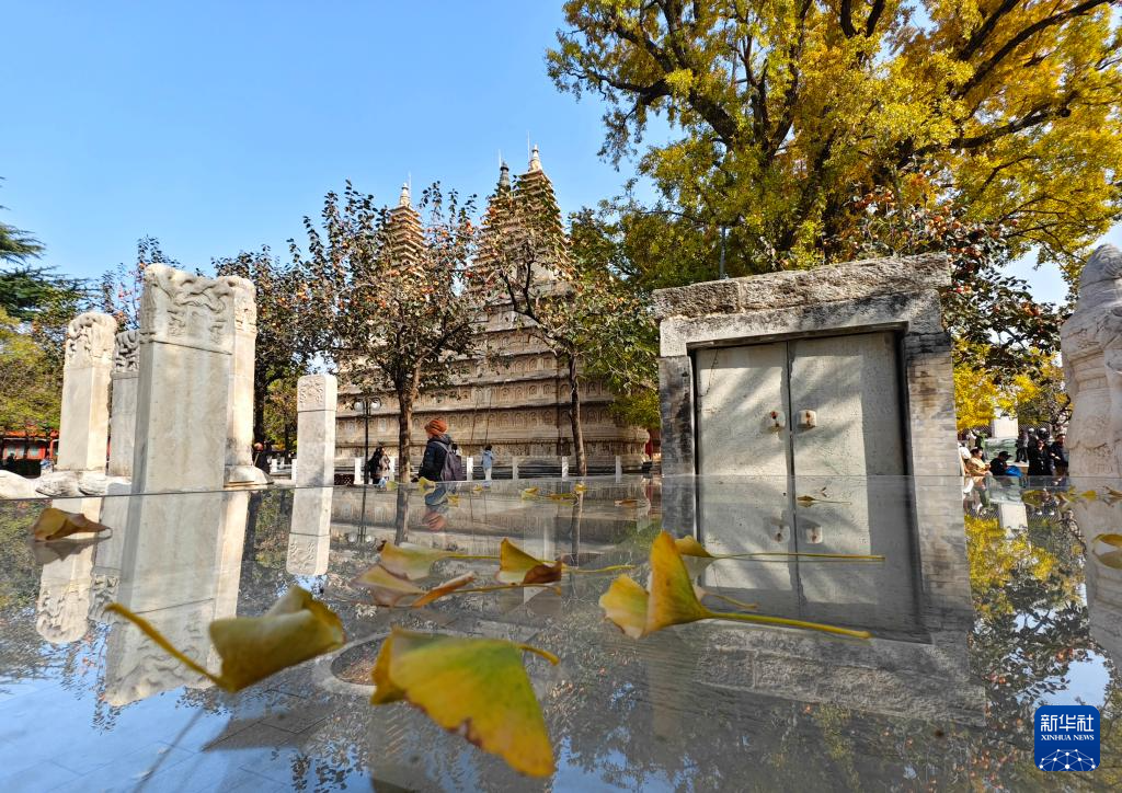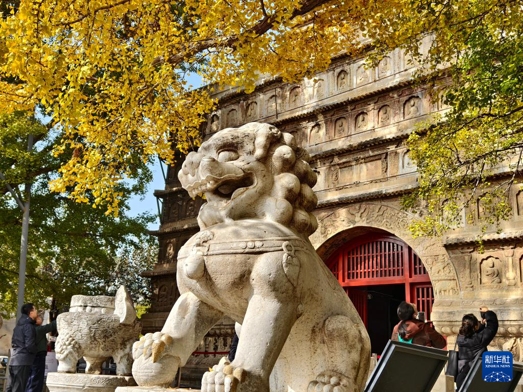 深秋时节,北京石刻艺术博物馆(也称五塔寺)内银杏尽黄,吸引众多市民、游客前来观赏。