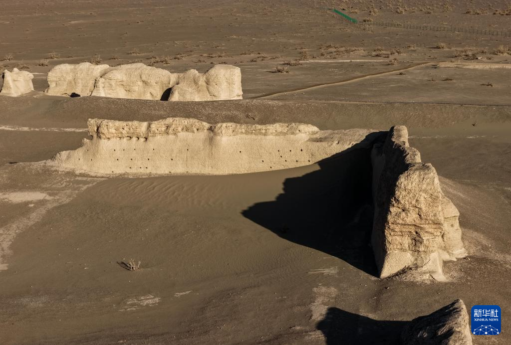 这是11月3日在内蒙古阿拉善盟额济纳旗拍摄的居延遗址中的唐代大同城遗址(无人机照片)。