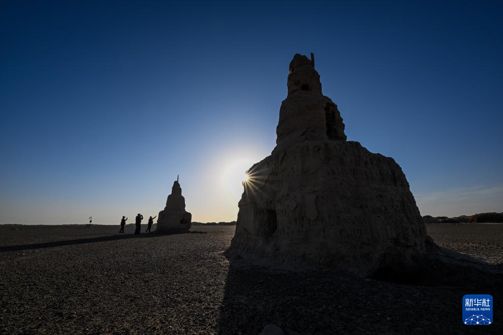 11月3日,额济纳旗文保中心工作人员在居延遗址中的西夏五塔遗址巡护。