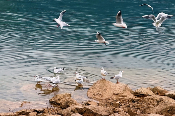 冬日的金沙江雾气缭绕,碧水荡漾,一群远道而来的红嘴鸥正上演着灵动的“水上芭蕾”。