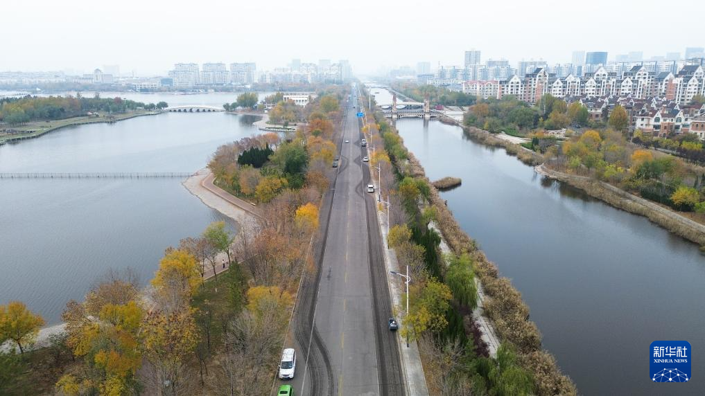 这是11月12日拍摄的东营明潭公园(无人机照片)。