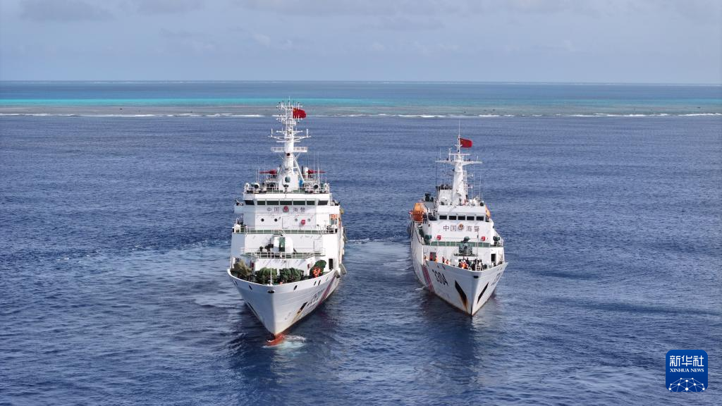 11月8日,中国海警舰艇在黄岩岛海域执行常态化巡航任务(无人机照片)。