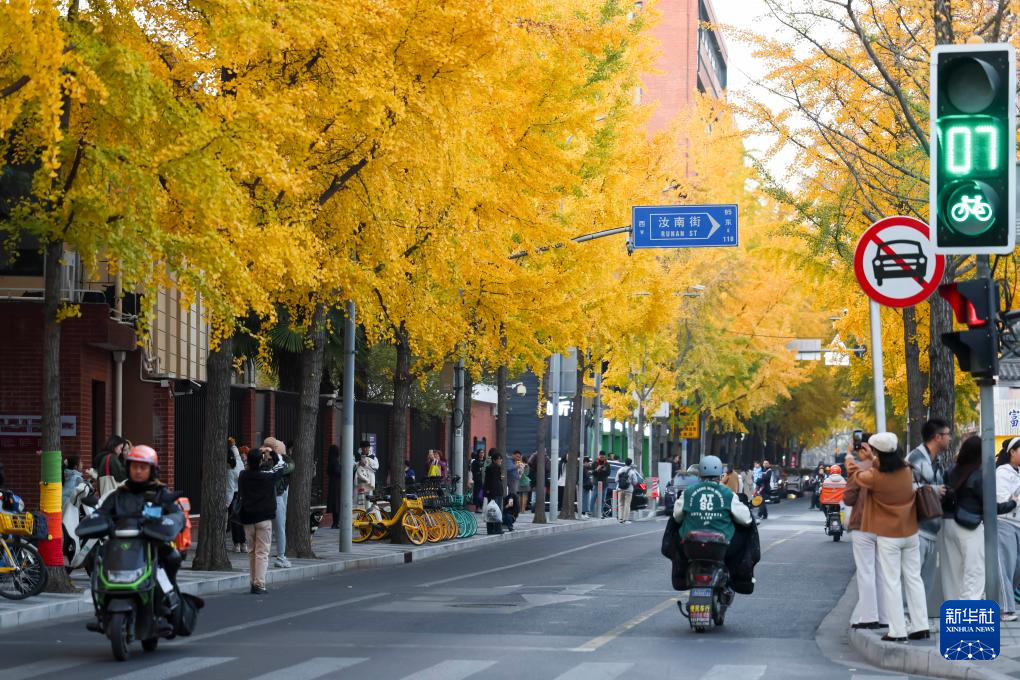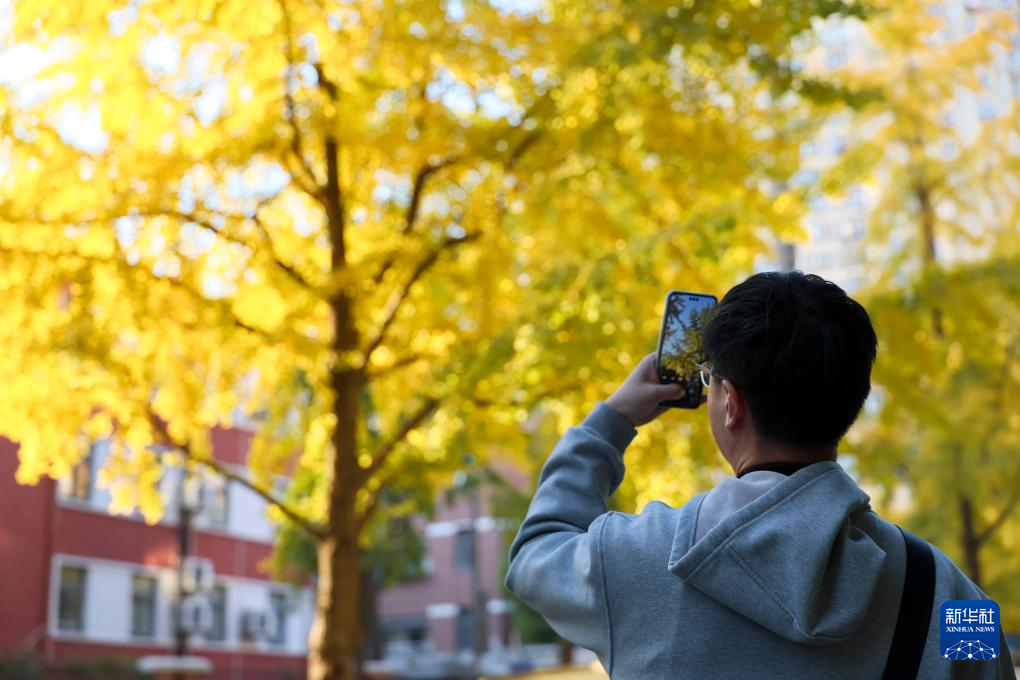 11月30日,市民在上海市黄浦区局门路拍摄银杏。