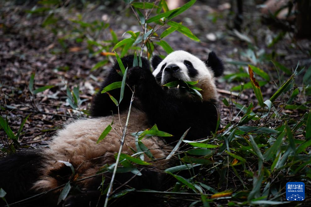 10月30日,在成都大熊猫繁育研究基地,一只大熊猫在吃竹子。