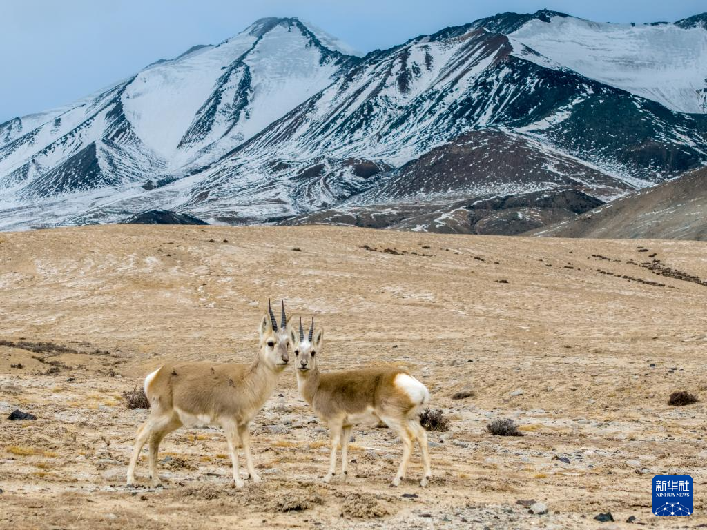 11月14日,国家二级保护野生动物藏原羚在甘肃省阿克塞县阿勒腾乡哈尔腾草原活动觅食。