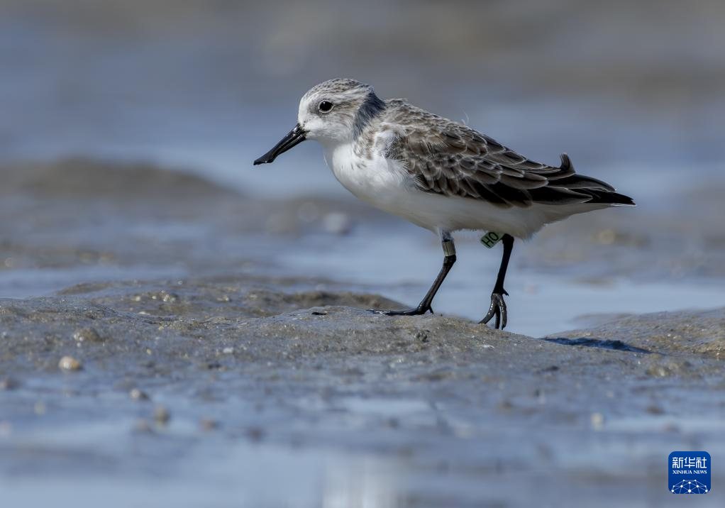这是连续三年来泉州围头湾越冬的戴“H0”脚环勺嘴鹬(11月9日摄)。