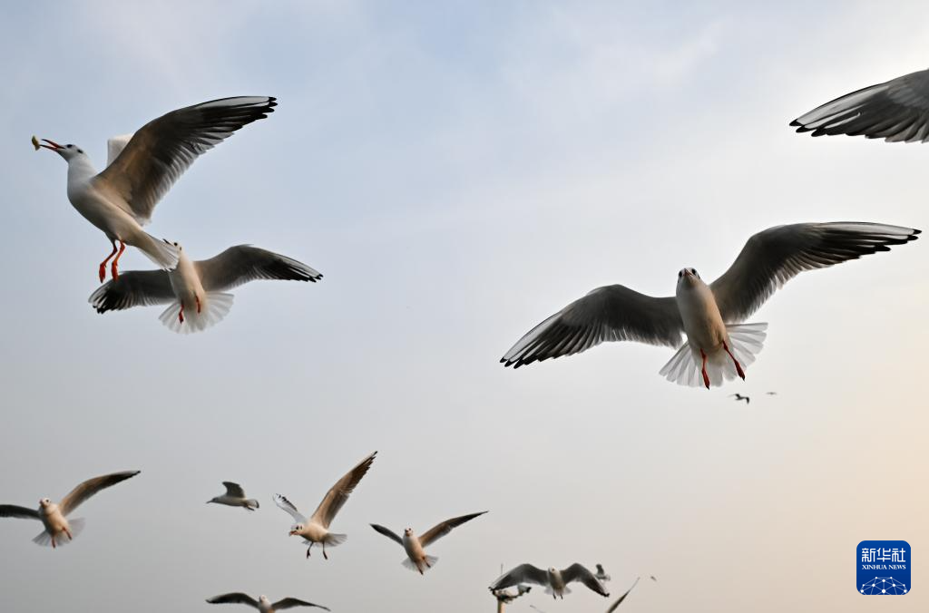 海鸥在空中飞翔(12月10日摄)。