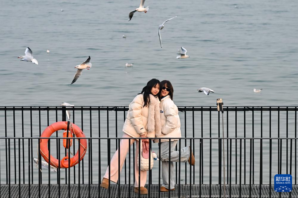 游人在观赏海鸥(12月10日摄)。