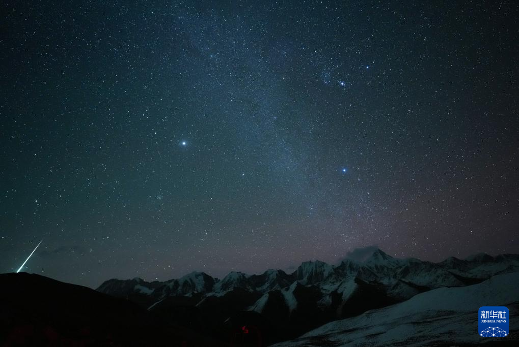 12月12日,在四川省康定市甲根坝镇提弄村,一颗双子座流星从贡嘎雪山上空划过。