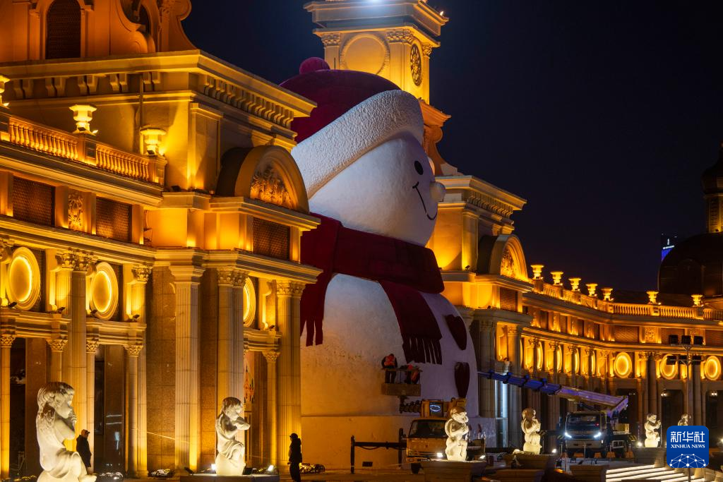 12月15日,哈尔滨市群力音乐公园大雪人完成主体建设,进入到最后的细节打磨阶段。大雪人设计身高19米、长14米、宽11米,总用雪量超过3000立方米,比往年增加1200立方米,为历年之最。