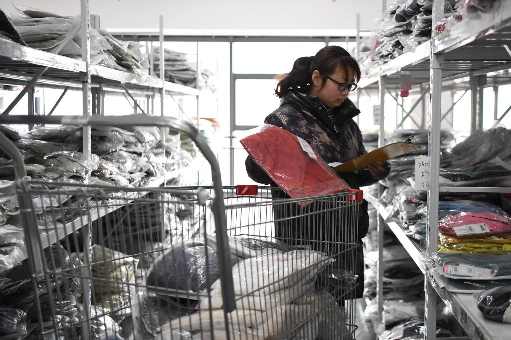 2月15日,工人在湖南省株洲市芦淞区的湖南欧微时尚集团核对订单发货。