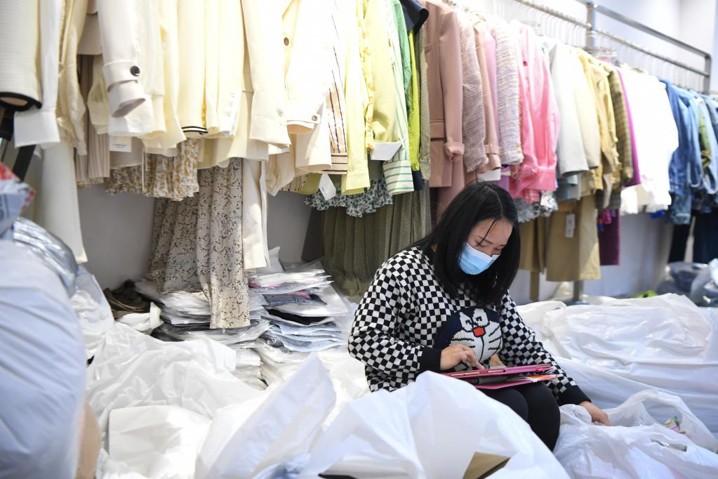 2月15日,批发商在湖南省株洲市芦淞区华丽服装批发大市场批发服装。