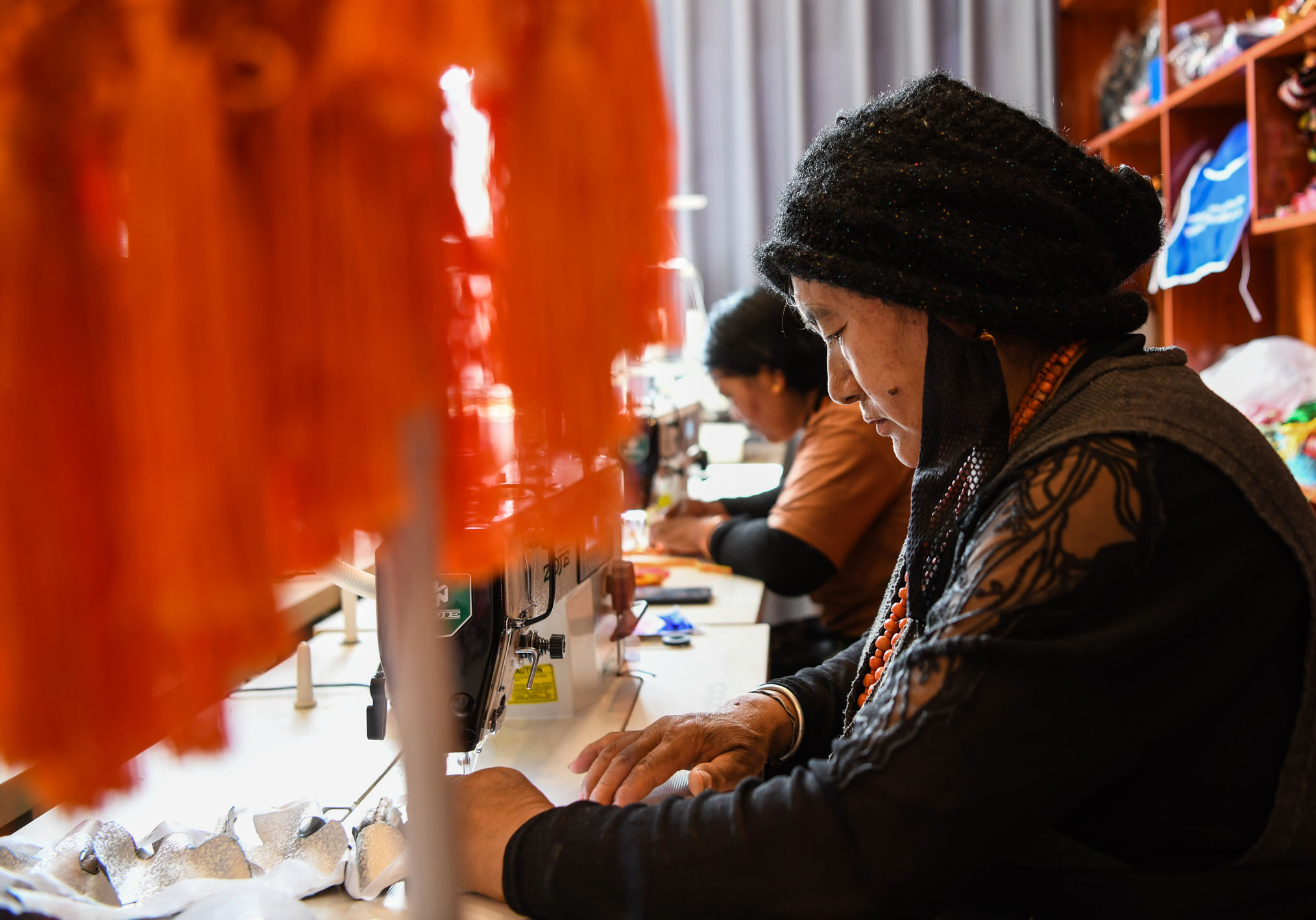 图为在四川省阿坝藏族羌族自治州若尔盖县唐克镇白河社区,手工合作社社员在缝制“吉祥娃娃”衣料。随着合作社的不断发展壮大,“吉祥娃娃”不断迭代升级、推陈出新,如今已远销海内外,在传播民族文化的同时为乡村振兴注入蓬勃动力。新华社记者 王曦 摄