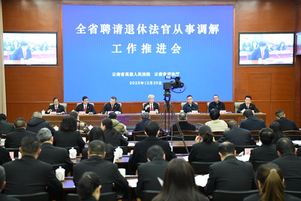12月29日,云南省高级人民法院与云南省司法厅联合召开全省聘请退休法官从事调解工作推进会,会上对全省加强和规范聘请退休法官从事调解工作进行了安排部署。