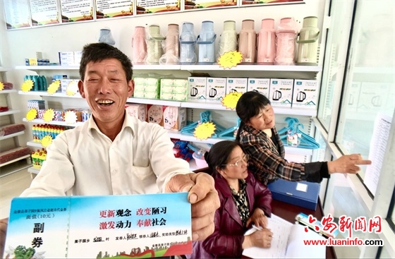 果子园乡龙墩村村民田显主拾金不昧获得100超市代金券领取日用品。