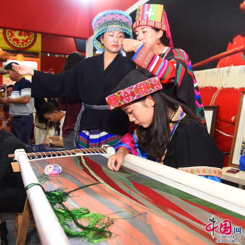 此外,在州市文产精品馆中,滇秀、建水紫陶、丽江东巴纸、彝族刺绣、个旧锡器、绝版木刻、迪庆藏刀、德宏珠宝等来自云南州市的工艺产品和技艺,以民族文化为基石,融合现代生活艺术,充分展现了云南26个民族文化的靓丽风采。