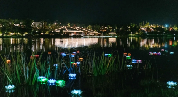 国庆中秋节(10月1日)当晚20:00,将在湖景餐厅前湖面举行古琴表演及放灯仪式,喜欢的朋友可以前往欣赏观看,也可至湖景餐厅现场购买荷花灯点亮入水(湖景餐厅长期提供放荷灯服务),祈愿家人幸福长久、岁月安稳。