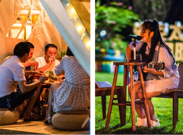 国庆期间,太平湖·星空帐篷酒吧正常营业,提供自助烧烤、啤酒套餐及各式中西简餐,驻唱歌手每晚20:00-22:00倾情献唱,另设网红地板钢琴、炫彩手鼓、动感不倒翁等灯光互动娱乐,让您在美食、美景、美酒,以及美妙的音乐当中,尽享休闲时光。青枫浦餐厅订位电话:0873-3065800