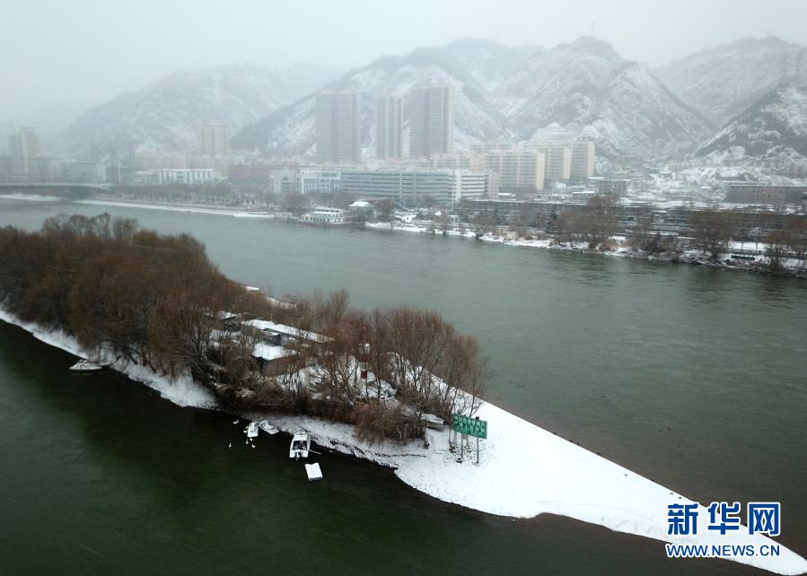 当日,甘肃省兰州市迎来降雪。白雪掩映下的黄河之滨,宛如一幅美丽水墨画。