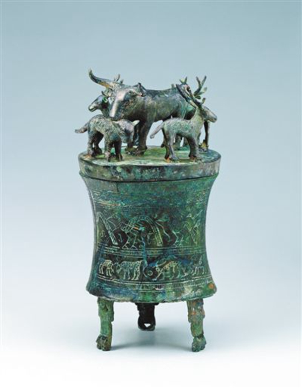 (图为江川李家山的虎鹿牛铜贮贝器)