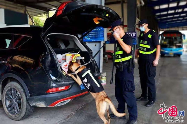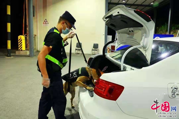 汽车尾部、行李货物、轮胎后备厢……盛夏7月,走进云南保山边境管理支队芒颜边境检查站执勤口岸时,一名训导员带着一条警犬一路嗅来,引来过往人员的注意。