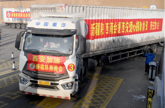 1月3日,随着一声“陕西加油!西安加油!发车!”6辆17.5米长、装满爱心物资的货车发往西安,将新疆和陕西人民的心紧紧联系在一起。