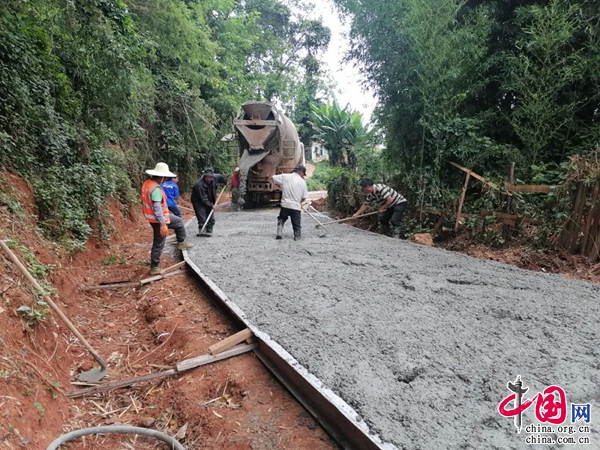 近日,走进文山市薄竹镇摆依寨村委会三家寨村小组,进村道路两旁的杂草杂树已全部清除,路面坑洼不平的地方也已经被用泥土或沙石填平。道路的路基调整、路面压实等前期工作早前已经完成。受近段时间连续降雨影响,一直无法进行浇筑,日前天气转好,通过专班技术指导组的核验无误后,终于可以实施浇筑硬化,同样等着浇筑硬化的道路还有薄竹镇狮子山二队的进村道路。
