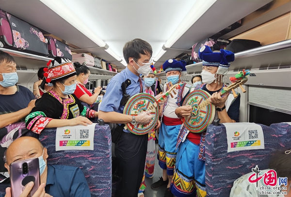在7月23日国际旅交会召开期间,开行丽江至西双版纳Y774次旅游列车,从“玉龙雪山”到“热带雨林”实现火车直达。截至7月28日,丽江至西双版纳旅游列车已往返开行6趟,累计运送旅客3265人,客座率保持在70%以上。(李明 邓瑜 昆明局集团公司供图)