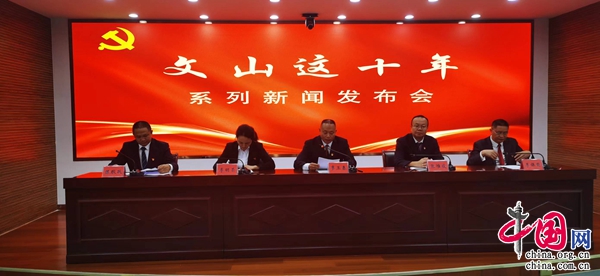 8月26日下午,“文山这十年”系列新闻发布会第八场“绿色三张牌”示范区建设专场在云南省文山州新闻发布厅举行。发布会上,文山州农业农村局对党的十八大以来打造“绿色食品牌”工作有关情况作了详细介绍。