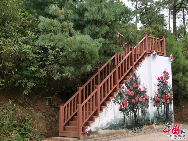 行至山顶是平坦开阔的“踏歌场”,鲜花簇拥着踏歌场,村民们闲暇时刻便相约到此打跳对歌,好一番热闹的场景。“镇政府帮我们修了栈道,我们上山也方便了,沿途风景也好,还能强身健体,尤其是马樱花开的时候,美得很呢!”下山途中遇到村民李叔正在爬山锻炼身体。