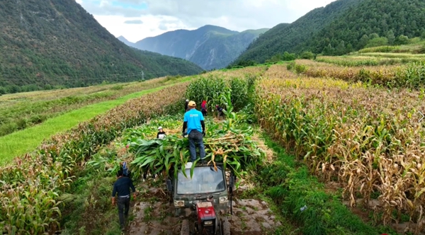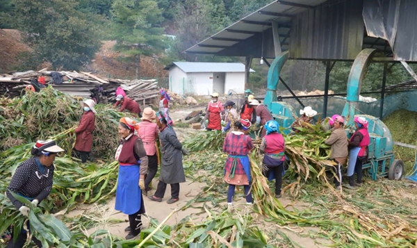 连日来,迪庆州香格里拉市三坝乡安南村的种植户们正忙着收割交售青储玉米以及巨菌草,供应龙峰生物科技开发有限公司的养殖场饲料储备,青储饲料成为该村产业兴旺、农户增收致富的新途径。