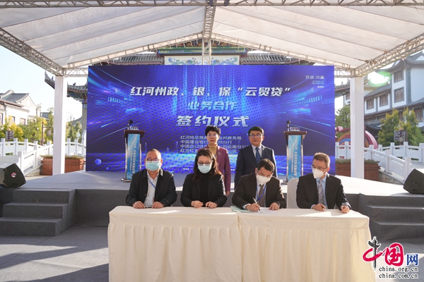 另悉,在活动中,红河州商务局、中国建设银行红河州分行、中国出口信用保险公司云南分公司、红河红金融资担保有限公司共同签订了红河州政、银、保“云贸贷”业务合作协议,标志着红河州服务跨境电商的全链条配套金融服务体系初步建立。28家中越企业以视频签约方式达成合作意向,签约金额33.78亿元人民币。(杜浩楠/文 仕诗宙/图)