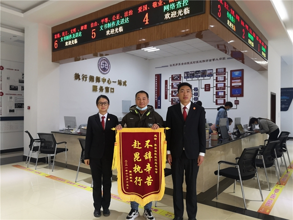 “我只是随意提供了一个线索,没想到法院出动如此迅速,能这么快拿到案款,真是太感谢法院了!”申请执行人激动地说道。3月,在这起一度陷入僵局的案件执行中,蒙自市人民法院执行干警为避免被执行人转移车辆,收到财产线索后,即刻准备好相关材料,连夜赶往昆明市依法强制执行,最终圆满执结该案。收到案款之后的申请执行人,随后向蒙自市法院执行局送来了锦旗,上书:“不辞辛苦,赴昆执行”。