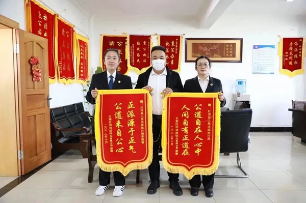 这同样是一面送到法院执行局的锦旗,却罕见地来自于被执行人。10月18日,这位被执行人将两面印有“正派源于正气,公道来自公心”“公道自在人心中,人间自有正道在”的锦旗送到红河县人民法院。他表示,作为被执行人,原本一直担心法院会更偏向于申请执行人一方,但法院执行干警不偏不倚、兢兢业业的作风打消了他的顾虑,也消除了其对履行生效法律文书的抗拒情绪。虽然目前还有贷款没有还清,但接下来也一定会想其他各种办法盘活企业,投入生产或者尽快处置资产来偿还债务……