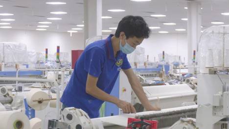 “阿克苏四达纺织有限公司,现在有全新设备602台,全线投产的504台,都是比较先进的智能化比较高的机型,现在满负荷运转的话,每个月可生产500多万米接近600多万米布。种类主要以服装面料为主,产品主要走数码印花这条线,供应国内外。”阿克苏四达纺织有限公司厂长曾利说。