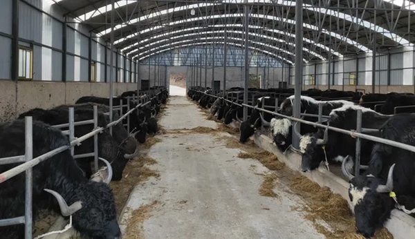 走进香格里拉市小中甸镇联合村鼎盛牦牛良种繁育基地,只见一排排牛舍错落有致,数百头牦牛肥壮。在牛舍里,工作人员正在给牦牛配种、喂药,饲养人员细心为牛儿们投喂饲料,清扫牛舍。该牦牛良种繁育有限公司成立于2020年5月,是一家集种植养殖、加工和“科、工、贸”为一体的全产业链农业企业。自成立以来,公司养殖规模不断扩大,在联合村新建保种繁育基地780亩,目前牦牛存栏600余头。