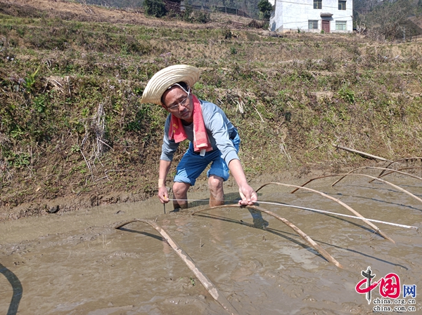 在春耕备耕的关键时期,乡农科站组织技术人员把农技服务送进田间地头,对农户的育秧技术、田间管理进行技术指导,同时做好农资调度,加强农资市场监管,为全乡春耕备耕有序高效进行按下了“加速键”。“以前我们老百姓育秧的方式首先要捂种,捂出苗后再撒进去,但是由于技术不到位,所以种子会捂臭,导致秧苗成活率低。所以我们现在改进的育秧方法是,先用太阳洒一到两天,洒干以后直接撒进去,然后盖上薄膜就行了,这是我们向老百姓指导的一种科学的育秧技术。”俄扎乡农服中心技术人员马牛壤介绍道。