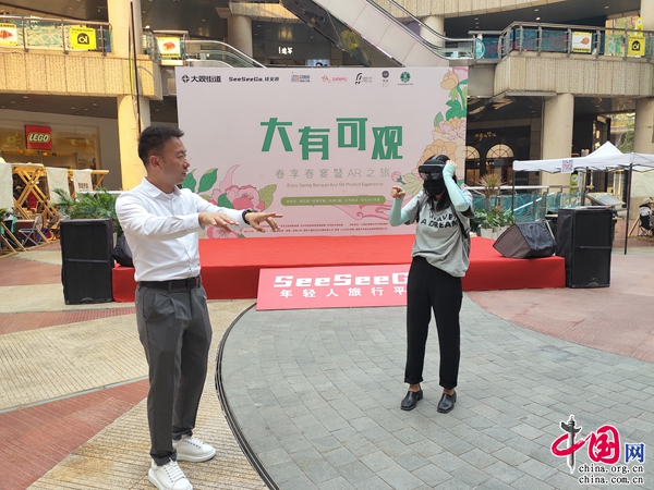 AR技术是一种将虚拟信息与真实世界巧妙融合的技术。“通过这种方式赋予旅游新的空间,让消费者得到更好的体验,让旅行得到更好的赋能,我们想做的是感激生活、创造美好。”为活动提供AR技术支持的SeeSeeGo董事长兼CEO贾皓程说。