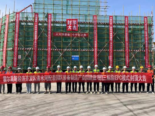 6月15日,伴随着最后一方混凝土的浇筑到位,在业主、监理及项目部领导的见证下,由中建新疆建工土木公司承建的“霍尔果斯经济开发区清水河配套园区装备制造产业园建设项目三标段(EPC模式)-餐厅”工程正式完成主体结构的封顶。