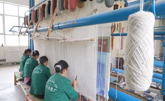 目前公司有32名员工,月工资2000元左右。以前,村民艾比拜•阿卜都卡迪尔是名家庭妇女,时代地毯有限公司成立后,她到公司来学习地毯编织技术,在家门口实现了就业。