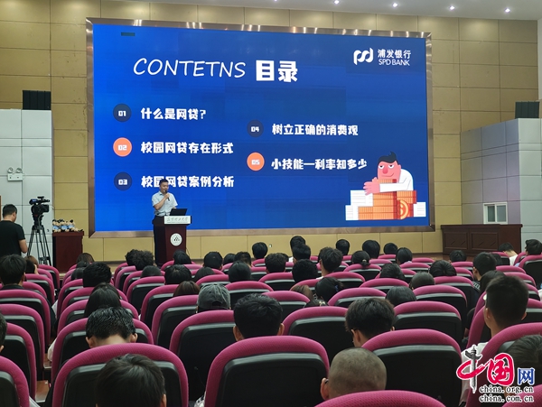 此次“普法课堂”的主题为拒绝校园网贷,主讲人为浦发银行昆明分行团委委员、零售业务部理财产品经理罗士,该行从校园贷相关概念、校园贷存在形式、校园贷案例及危害、树立正确的消费观、金融知识小技能“利率知多少”五个方面进行校园网贷普法宣传。