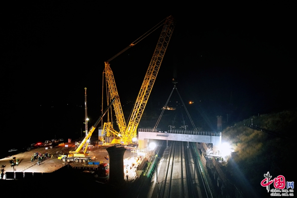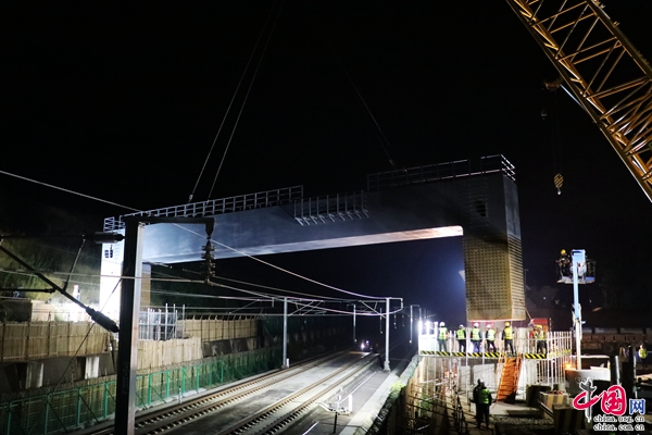 据中国铁路昆明局集团公司(下称“国铁昆明局”)介绍,11月19日凌晨随着中铁四局施工人员将最后一榀重155吨的门式墩钢盖梁缓缓吊起,跨越沪昆高铁平稳落在渝昆高铁罗荣庄左联络线特大桥7号墩上,标志着渝昆高铁罗荣庄左联络线特大桥钢盖梁吊装顺利完成,为后续架梁、铺轨创造了有利条件。至此,在建渝昆高铁与既有沪昆高铁在云南境内实现“空中相交”。