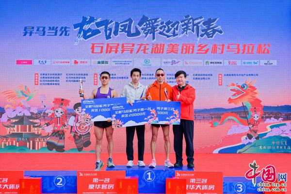 1月1日,“异马当先·龙飞凤舞迎新春”石屏异龙湖美丽乡村马拉松鸣枪开跑。本次赛事吸引了来自全国的6000多名跑者参与。经过激烈角逐,男子全程马拉松冠军被粟国雄斩获,净成绩02:16:25,女子全程马拉松冠军被钱家艳夺得,净成绩02:46:45。