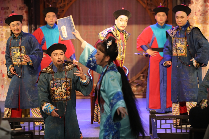 昆明市传统地方戏曲和曲艺传承展演中心带来了廉洁主题庭院滇韵实验剧《钱南园》。该剧通过杨明等滇剧艺术家惟妙惟肖的表演,颂扬了钱沣廉洁奉公、刚正不阿的气节。