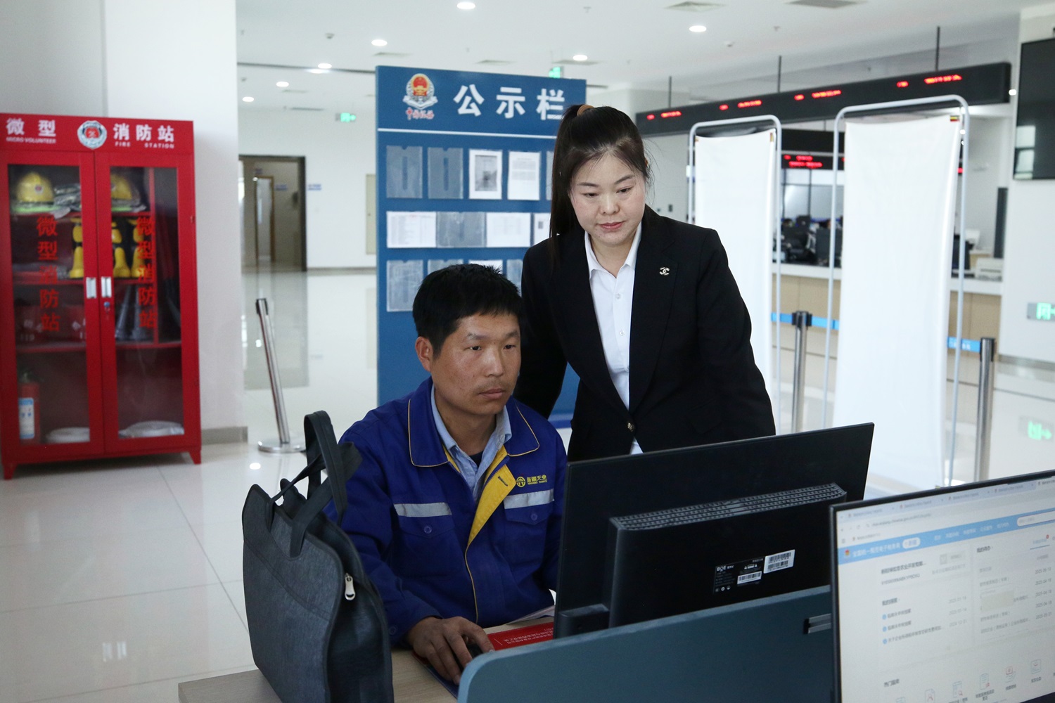 图为涉税专业服务志愿者辅导纳税人自助办税。