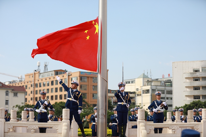 (活动当日,在聂耳广场举行了聂耳故乡“同升国旗•同唱国歌”升旗仪式。白迪云摄)