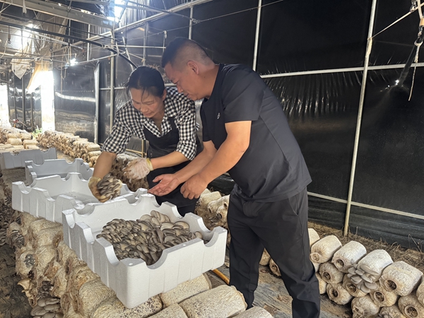 走进平菇大棚,一排排菌包整齐排列,阵阵菌香扑鼻而来,一朵朵肉嘟嘟的平菇争先恐后地从菌棒上探出“小脑袋”,鲜嫩饱满。工人们穿梭其间,动作娴熟地采摘、装筐、搬运,各项工序井然有序。