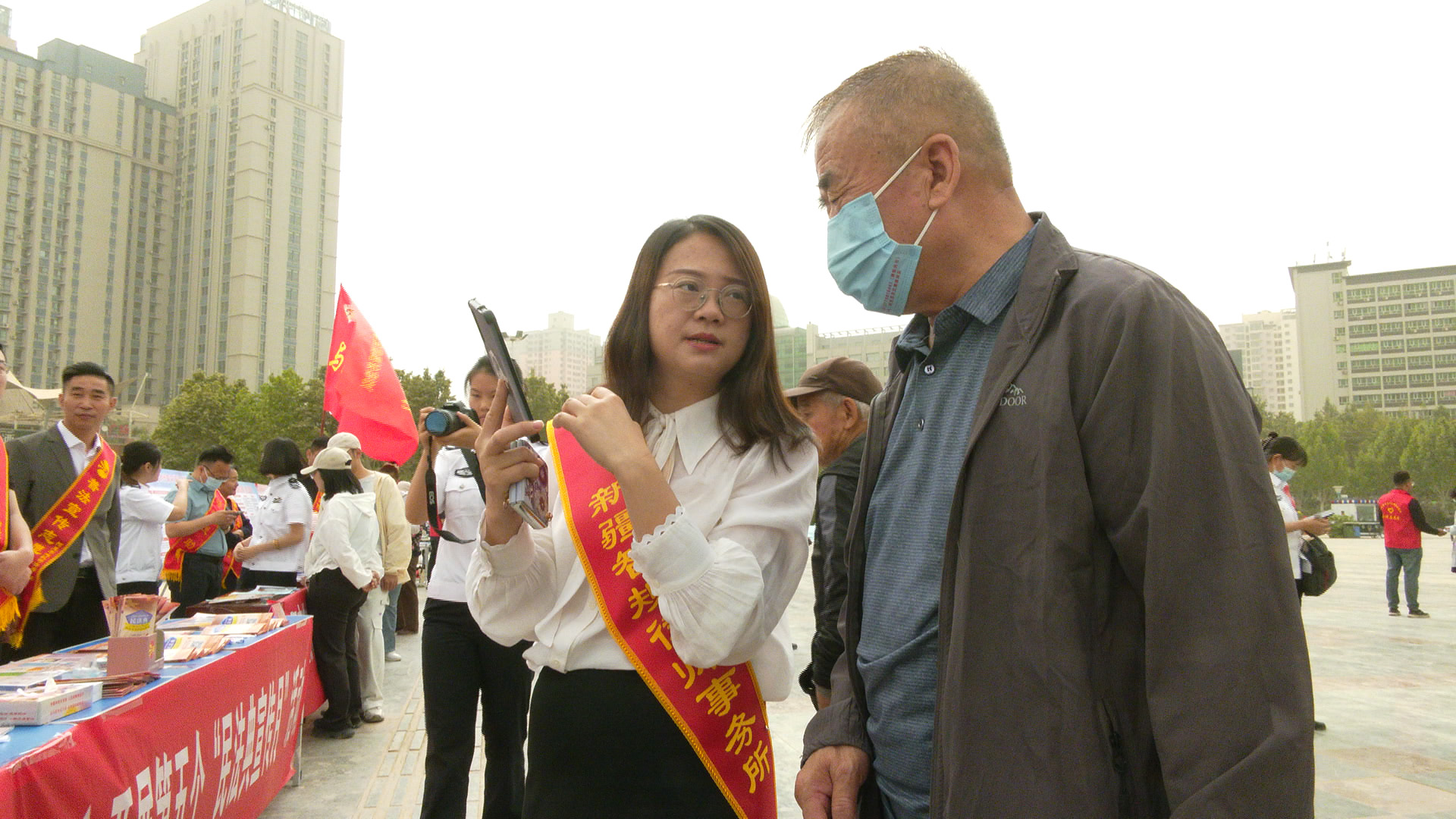 工作人员正在向过往群众普及民法典相关知识。上官新宇摄