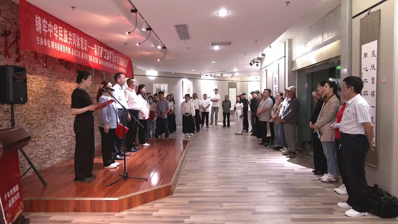 5月12日,由精河县委宣传部、县总工会、县文体广旅局、县文联共同主办的铸牢中华民族共同体意识——精河县“工会杯”美术书法摄影作品展在精河县美术馆开幕。精河县政协党组成员、副主席木合塔尔•马合苏提出席开幕式,县直各相关部门干部职工及书画爱好者60余人共同见证这场文化盛宴。