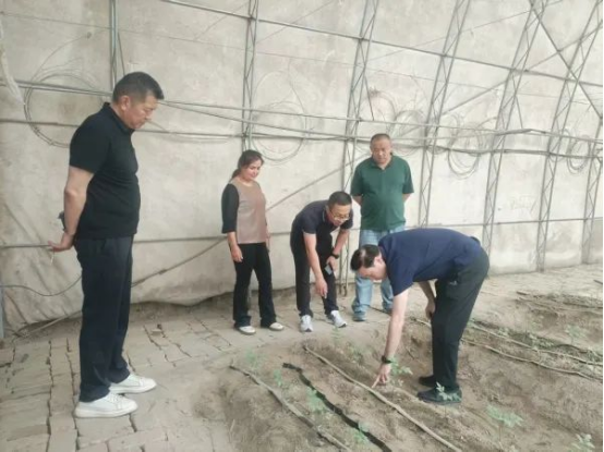 走进新建的27座温室大棚,西红柿、皮芽子(洋葱)等作物长势喜人。驻村工作队依托国家能源集团资金支持,培养大棚种植能收,引导村民发展“蔬菜+林果”复合种植。亚力坤·吐尔逊详细询问了大棚致富带头人阿米乃·阿卜杜拉木关于大棚运行情况,要求工作队加强技术培训,要让大棚不仅是‘菜篮子’,更要成为乡村振兴产业致富的‘样板间’。